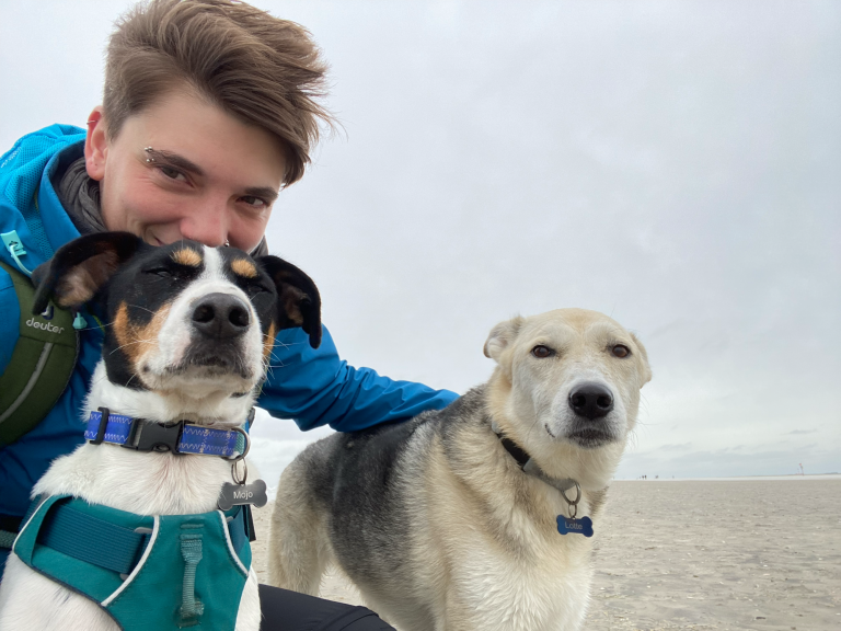 Mein zweiter Hund Mojo zog 2020 bei mir ein mit starkem Übergewicht, ebenfalls aus dem Tierschutz. Innerhalb eines Jahres nahm er 19kg ab. Wieder war das Thema Ernährung noch präsenter in meinem Alltag als mit Lotte bereits. Deshalb beschloss ich 2023 eine Ausbildung zur Ernährungsberaterin für Hunde an der Barf Gut Akademie zu machen. Diese schloss ich im Frühjahr 2025 ab.
